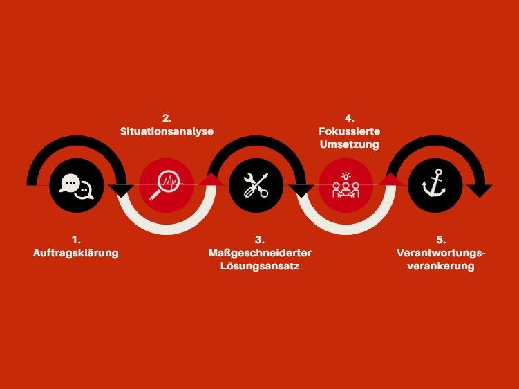 Wir arbeiten gezielt an den entscheidenden Punkten: Entscheidungen klären, Verantwortung festziehen, Zusammenarbeit handlungsfähig machen. Der Fokus liegt auf Wirkung und Umsetzung – nicht auf Beschäftigung oder Symbolik.